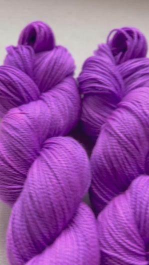 Merino wool and recycled nylon superwash sock/fingering yarn hand dyed in the Yarntuary colorway “Levitating”, inspired by the song by Dua Lipa.