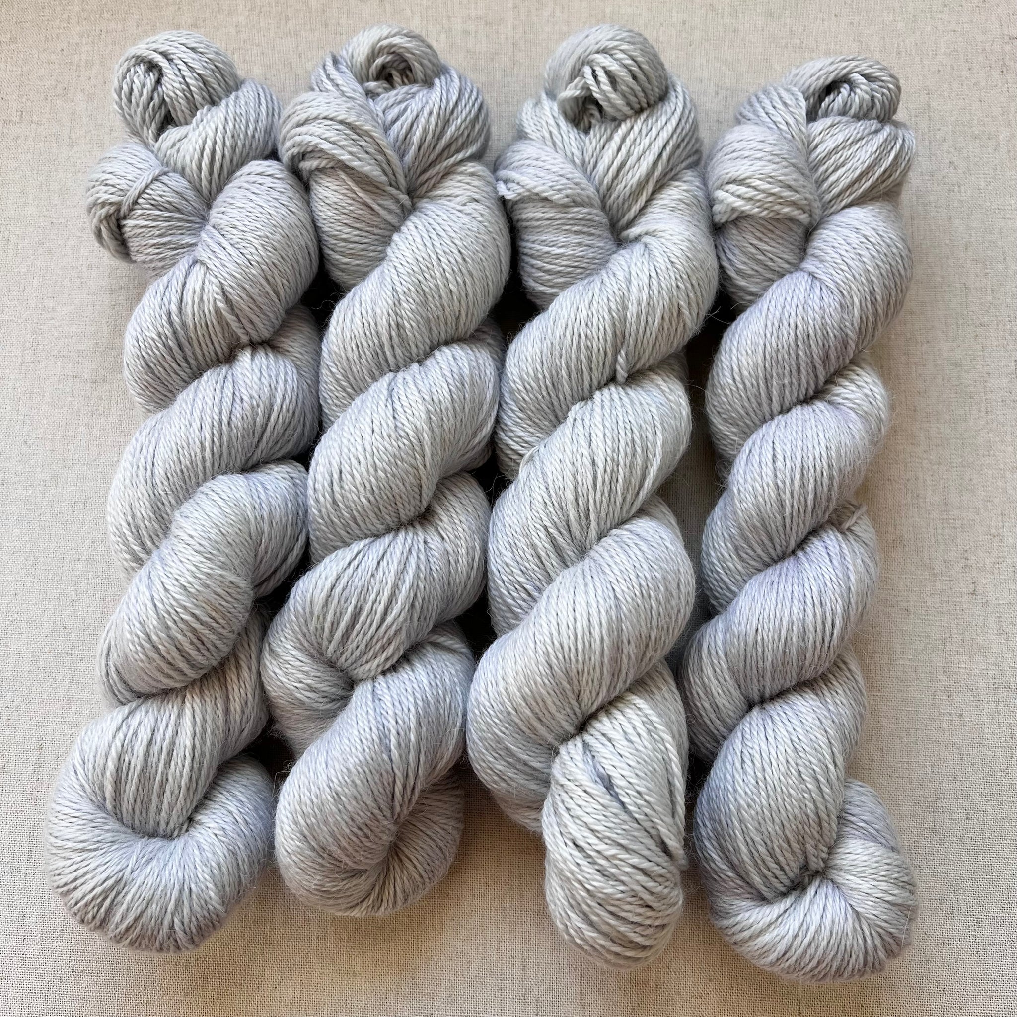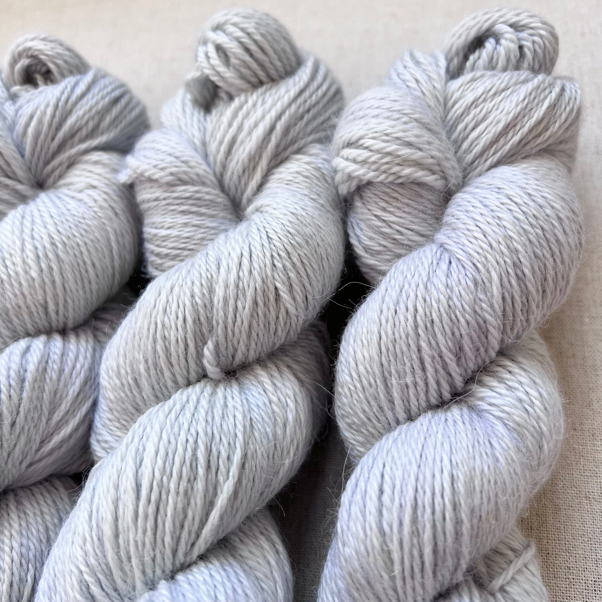 Baby alpaca sport weight yarn hand dyed in the Yarntuary colorway “It’s All Over Now, Baby Blue”, named after the song by Them.