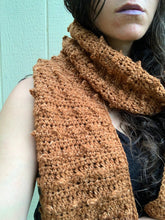 This scarf is a rich orange/caramel fall color. The stitching on both sides is beautiful and modern. The texture in this scarf is unique and pretty.